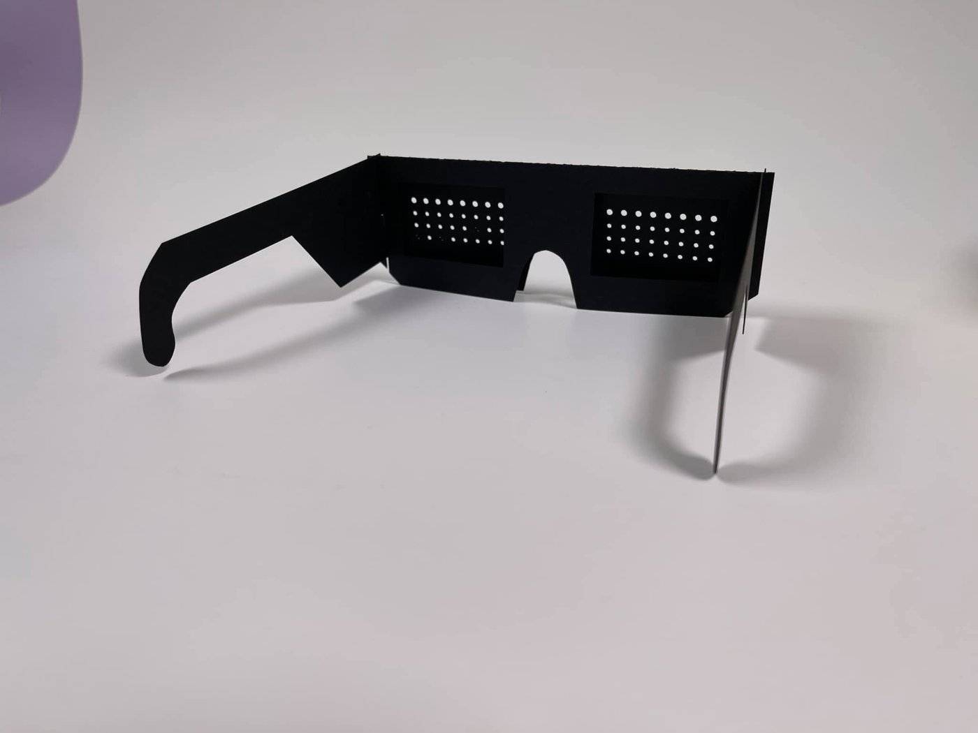 그러다 어릴 때 하던 핀홀을 이용해서 선명하게 볼 수 있다는 생각을 하고 어디선가 봤던 시력이 좋아지는 안경? 같은 것을 만들어 보기로 했습니다. 구멍은 0.5~ 2 까지 뚫어 시점을 다양하게 볼 수 있도록 하고 일정 간격으로 뚫어 시야 확보 및 빛가림으로 간섭하는 현상을 최소화 하도록 조정했습니다.