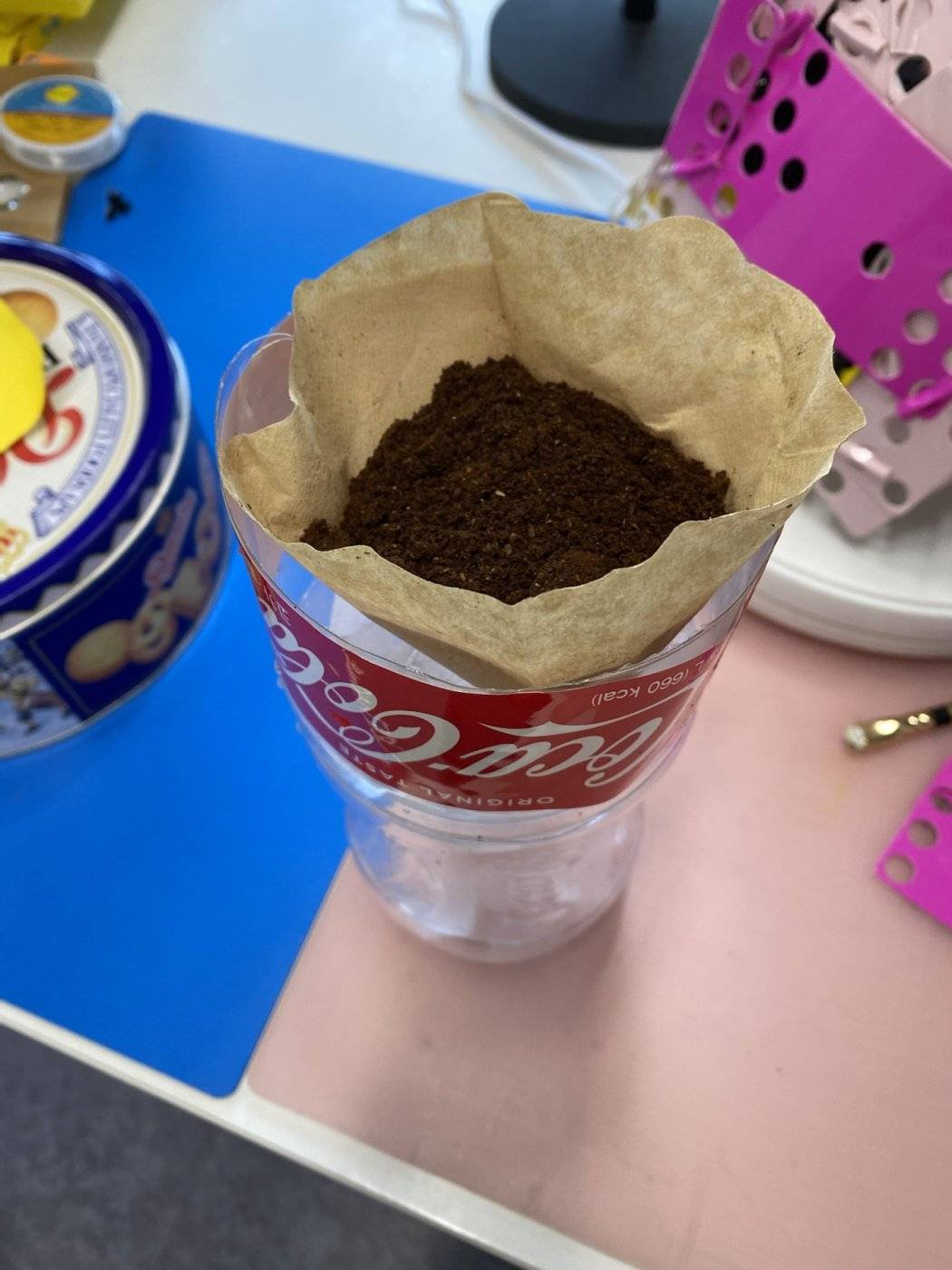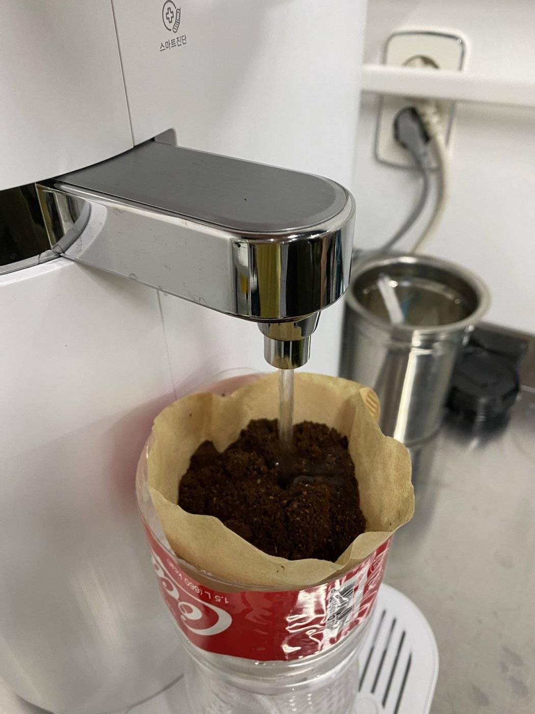 사무실에 커피그라인더를 도입한 다음 예전에 하던 아이스드립커피를 해보기로 했습니다. 물론 그냥 드립퍼로 해도 상관없지만 얼음을 넣어 천천히 드립해서 반으로 가른 콜라보틀을 뒤집어서 드립지 바로 아래에도 얼음을 그리고 떨어진 아랫 부분도 얼음을 넣어 커피가 시원해지게 했습니다.