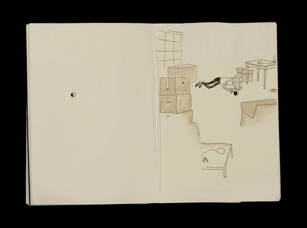 작가는 물성이 있는 책을 만들고 싶어했고 많은 스케치북에 구멍을 뚫고 종이 사이에 구멍을 사용하여 그림을 그리기 시작했습니다.
