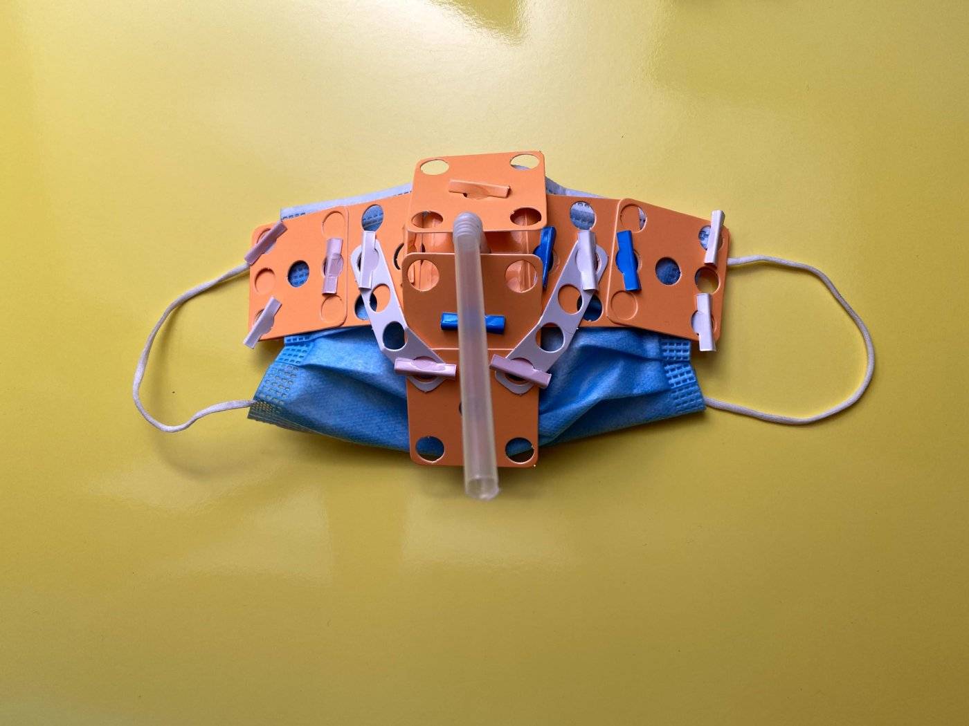 마스크를 위아래로 열면 구멍이 나오고 거기에 빨대를 꼽을 수 있습니다.