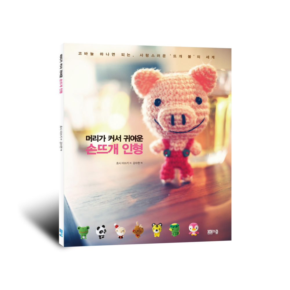 - 호시 미쓰키의 [머리가 커서 귀여운 손뜨개 인형]은 일부러 작정하고 ‘큰 머리를 의식해서’ 만든 작품집이다. 초보자도 쉽게 따라서 만들기 쉽도록 머리와 몸통과 팔과 다리 파트를 공통으로 사용하도록 구성했다. 털실의 배색이나 귀의 모양, 각각의 특징적인 부분에 살짝 변화를 준 것만으로 다양한 동물로 변화를 줄 수 있죠! 그래서 코바늘 초심자라도 조금만 연습하면 아주 쉽게 머리가 커서 귀여운 동물 손뜨개 인형을 만들 수 있다. 책에는 머리가 크면