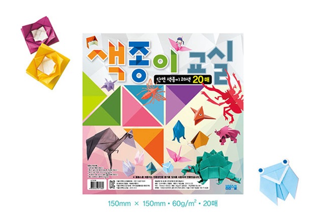 출판사가 만든 색종이 <색종이 교실>은 다양한 종이접기 작품에 도전할 수 있는 15cm*15cm 크기의 단면 색종이로 20색으로 꾸며 제공합니다. <색종이 교실>은 자율안전확인(KC) 마크를 획득했으며 친환경 콩기름 잉크를 사용해 아이들도 안심하고 쓸 수 있는 색종이입니다