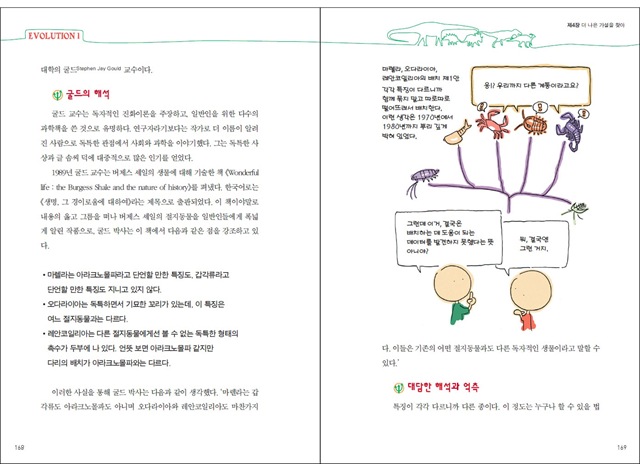 특히 이 책은 전개 방식이 남달라 백과사전식으로 지식과 정보를 나열하지 않는다. 기존 지식에 의문을 제기하고, 다양한 자료를 바탕으로 여러 생물학 이론을 대입, 추론하고 결과를 이끌어내는 식이다. 이런 과정을 통해 저자는 우리의 상식을 무너뜨리고 진화에 대한 새로운 사실을 알려준다. 그렇다고 이 책을 따분한 학술서로 오해하지는 말자. <생물선생님도 몰래 보는 진화론>은 각종 그림과 사진을 풍부하게 활용해 생물의 미스터리를 재미있게 풀어낸 책이다.