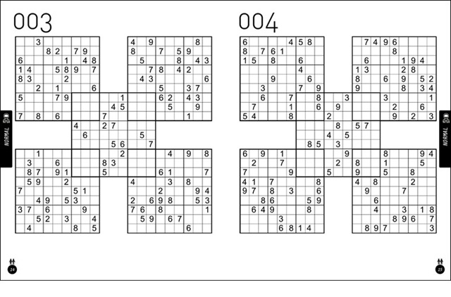 ‘사무라이 스도쿠’는 기존 스도쿠에서 발전, 5개의 문제가 연결된 결합형 퍼즐을 담고 있다. 5개의 스도쿠가 결합된 모양이 마치 사무라이 옷과 비슷하다고 해서 영국에서 이름 붙인 이 퍼즐은 보다 강력한 몰입의 즐거움을 만끽할 수 있다.
