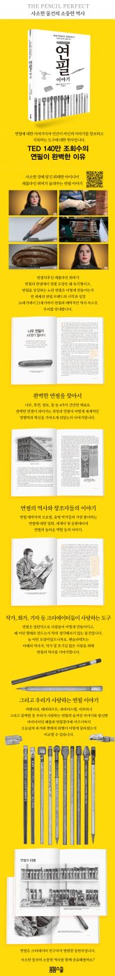 유명인의 연필과의 일화, 연필에 대한 예기치 않은 사실, 크리에이터의 친구로의 연필의 존재감 등 문화 아이콘인 연필에 대한 이야기를 연필을 사랑하는 저자의 전문적이며 애정 넘치는 연구 발자취가 펼쳐집니다.