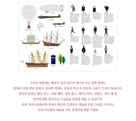오랜 역사를 거쳐 이뤄진 런던 거리를 생생하게 느낄 수 있고 스티커를 붙이고 설명을 읽다 보면 어른들도 몰랐던 사실들도 하나하나 알아가는 재미가 생긴답니다.