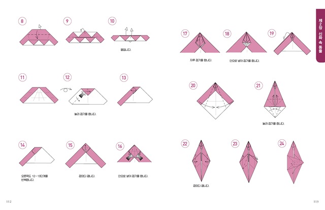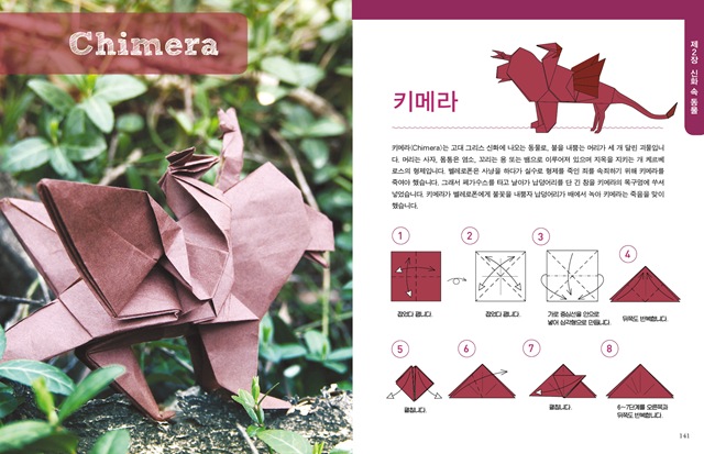 <신화동물접기백과>는 동양의 황도십이궁이라고 할 수 있는 십이지와 서양의 고대신화에 등장하는 동물을 직접 접어볼 수 있는 책이다. 시중에 판매되고 있는 종이접기 도서들이 간단한 동식물이나 사물을 만드는 데 그쳤다면 이 책에서는 쥐, 소, 호랑이 등 시간과 방위를 수호하는 열두 동물과 함께 유니콘, 켄타우로스, 와이번 등 26가지 이상의 신화 속 동물을 만들 수 있다. 종이학처럼 흔한 동물 접기에 질린 사람이라면 신선함을 느낄 수 있을 것이다. 난이도 역시 기초에서부터 고급까지 단계적으로 구성되어 있어 내 실력이 어느 정도인지 가늠해 볼 수 있다. 초보자라면 카드 슈트처럼 난이도가 쉬운 과제에 도전하면서 종이접기에 입문하고, 어느 정도 능숙한 사람이라면 ‘머리 셋 달린 용’과 같이 수준 높은 종이접기를 통해 실력을 기를 수 있다.