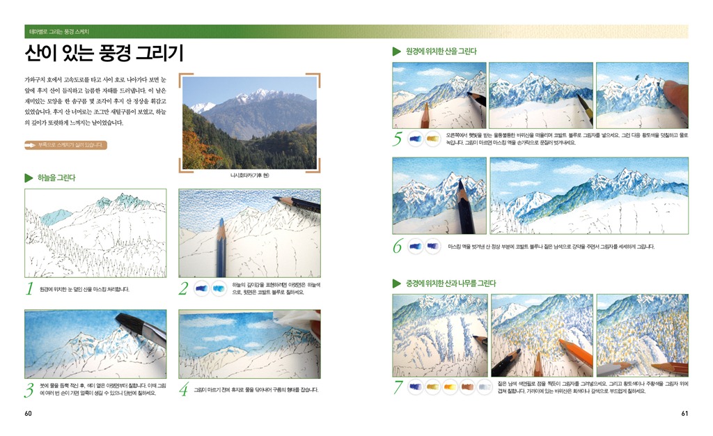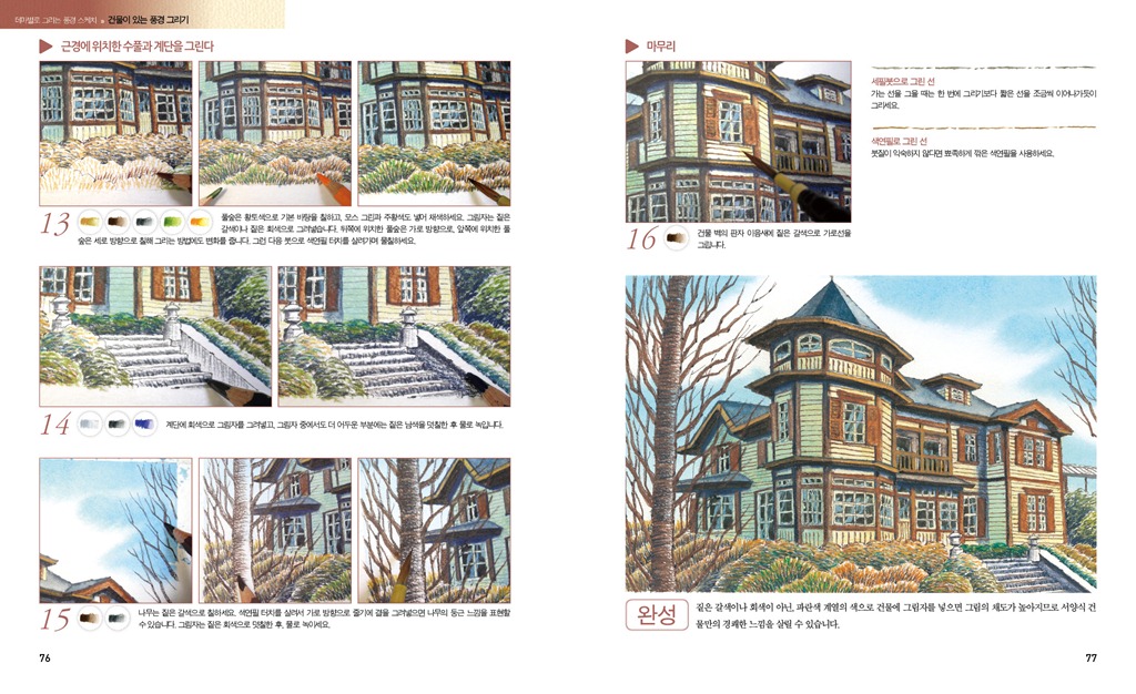 <수채색연필과 함께 떠나는 풍경 스케치 여행>은 그림 그리기에 두려움이 있거나 그림을 좀 더 다양한 기법으로 그리고 싶은 사람에게 많은 도움이 되는 풍경화 입문서라고 할 수 있습니다.