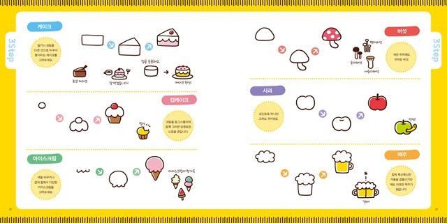 아기자기한 사물을 그리는 비법/아기자기한 사물로 선을 장식하자/공부/직업/가구/패션/여가/실내/음식/디저트/봄/여름/가을/겨울/사람/아이콘/문자‧기호