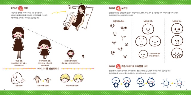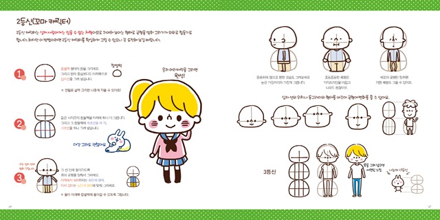 인물을 그리는 비법/2등신(꼬마 캐릭터)/성별을 구분해서 그리는 방법/연령을 구분해서 그리는 방법/복장/계절별 복장/다양한 표정/여러 가지 포즈/여러 가지 포즈 모음/동물 그리기/나만의 캐릭터를 만들자