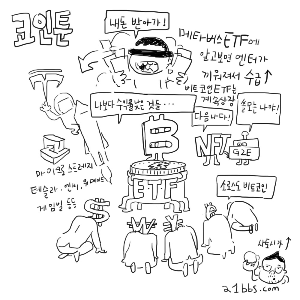 - 코인툰은 그리는 순서대로 보시는 게 더 재미있을 거 같아서 유튜브 라이브로 찍어봤습니다.