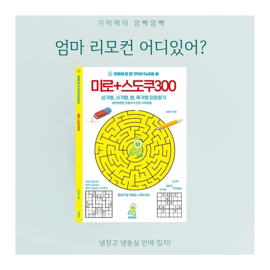 하루에 한 장 기적의 두뇌퍼즐 3 미로+스도쿠 300 - YES24 모든 종류의 수학게임은 유익하다!-수학의 노벨상 아벨상 수상자 아티야미로찾기미로(迷路)는 복잡한 길을 찾아 출발점부터 시작해 도착점까지 도달하는 퍼즐로 미로는 길을 잃게 만들어 목표 http://www.yes24.com/Product/Goods/100310913