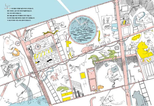 아주 먼 옛날, 세상이 처음 만들어지고 얼마 지나지 않아 폭우가 쏟아졌습니다. 비는 멈추지 않고 세상을 물바다로 만들었죠. 노아는 거대한 방주를 만들어 모든 동물들을 태웠습니다.