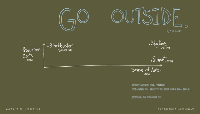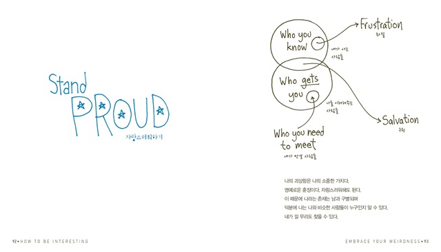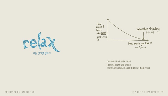 뉴욕의 쿨한 사상가인 제시카 해기는 우리의 삶을 ‘수동적인 삶’과 ‘깨닫지 못하는 삶’, 그리고 ‘재미있는 삶’ 이 세 가지로 정의했다. 그리곤 우리에게 어떤 삶을 살 것인지 질문하고 해결책을 제시한다. 그녀는 구구절절 설명하고 설득하지 않는다. 여러 사례도 나열하지 않는다. 놀랍도록 단순한 그림과 도표, 그리고 때로는 겨우 한두 문장의 표현으로 돌직구를 날린다. 그녀의 신선하고 명쾌한 인생수업은 우리를 더욱 풍성한 삶으로 안내한다.
