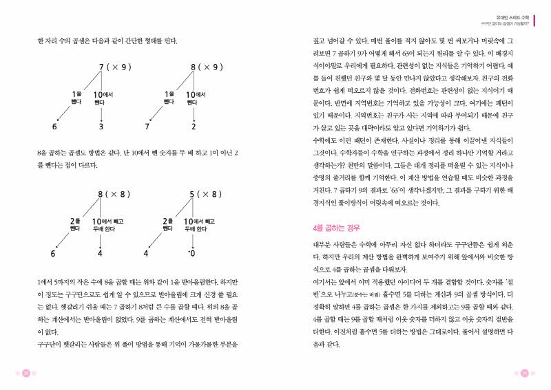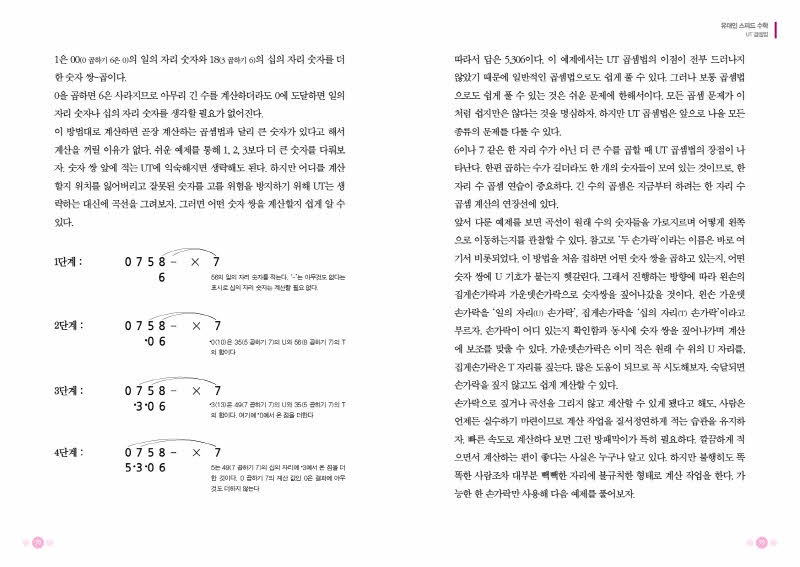 수학에 자신이 있는 초등 고학년의 자기 주도식 선행학습에 도움이 되며, 중고등학교 수학 과정에서 흥미를 잃어가는 청소년에게 새로운 재미를 느끼게 해줄 것이다. 물론 중고교 수학에 자신 있는 학습자라면 이 새로운 스피드 수학을 통해 유대인의 스스로 질문식 학습에 도전해 보길 권한다. 새로운 형태의 계산법을 익히고 연습하면서 마치 게임처럼 퍼즐처럼 머릿속이 맑아지는 놀라운 경험을 하게 될 것이다.