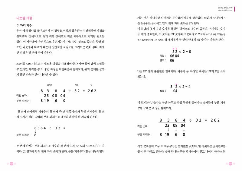 간단하게 나눗셈 하기 / 빠른 방법으로 나눗셈 하기 / 나눗셈 과정 / 자세한 계산 방법 / 제수가 세 자리 수일 때 / 제수가 긴 나눗셈 / 나눗셈의 검산