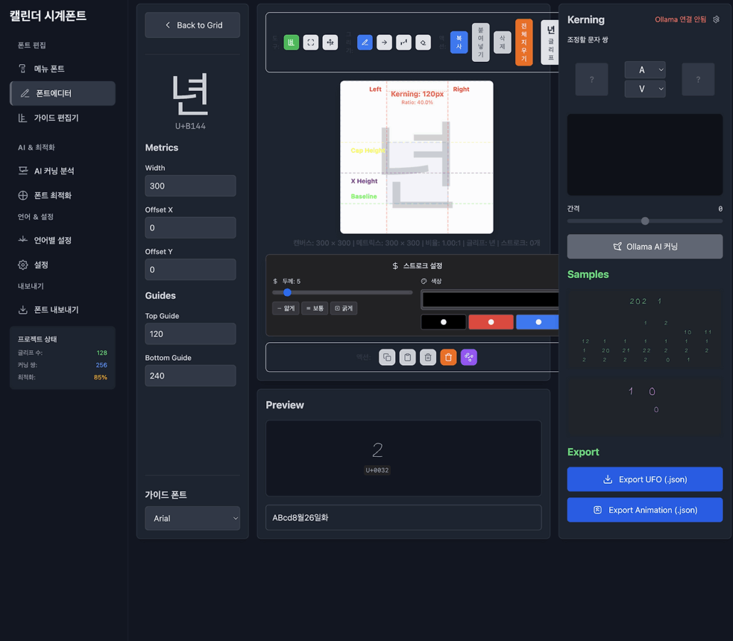 Ollama가 손글씨의 폰트 Kerning 값을 자동으로 맞춰주고 미리 깔아놓은 폰트를 선택해서 진행합니다. (단 저작권 때문에 시스템폰트로만) 달력, 시계 전용 손글씨 폰트 에디터지만 조만간 저장이나 서비스용이 아니라 이런 걸 하는 사람이 있구나 정도로 한글날에 오픈을 목적으로 열심히 만드는 중입니다.